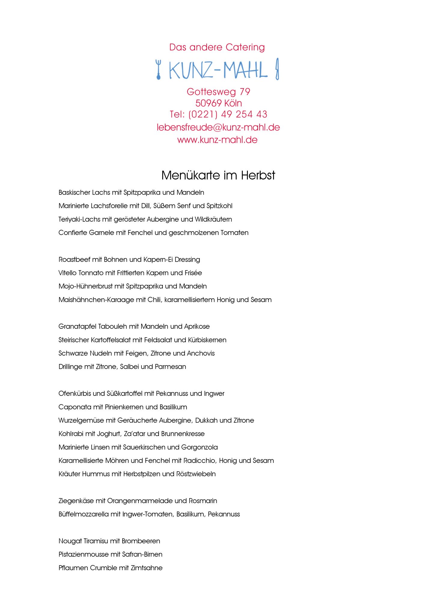 Menü im Herbst